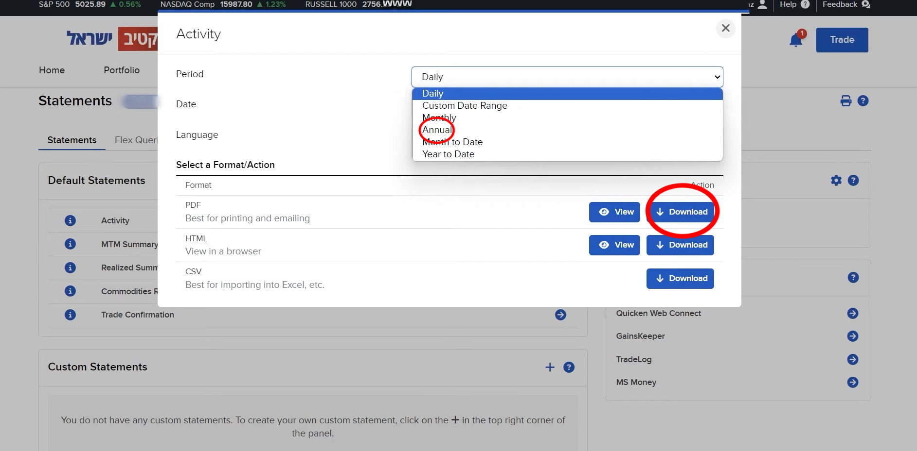 לבחור תקופה שנתית "Annual" ולהוריד את המסמך ולהוריד את המסמך כPDF