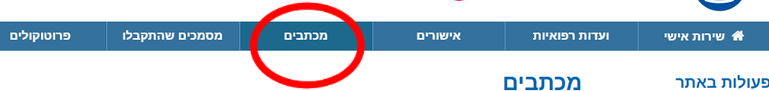לאחר ההתחברות, יש ללחוץ על "מכתבים" בסרגל למעלה